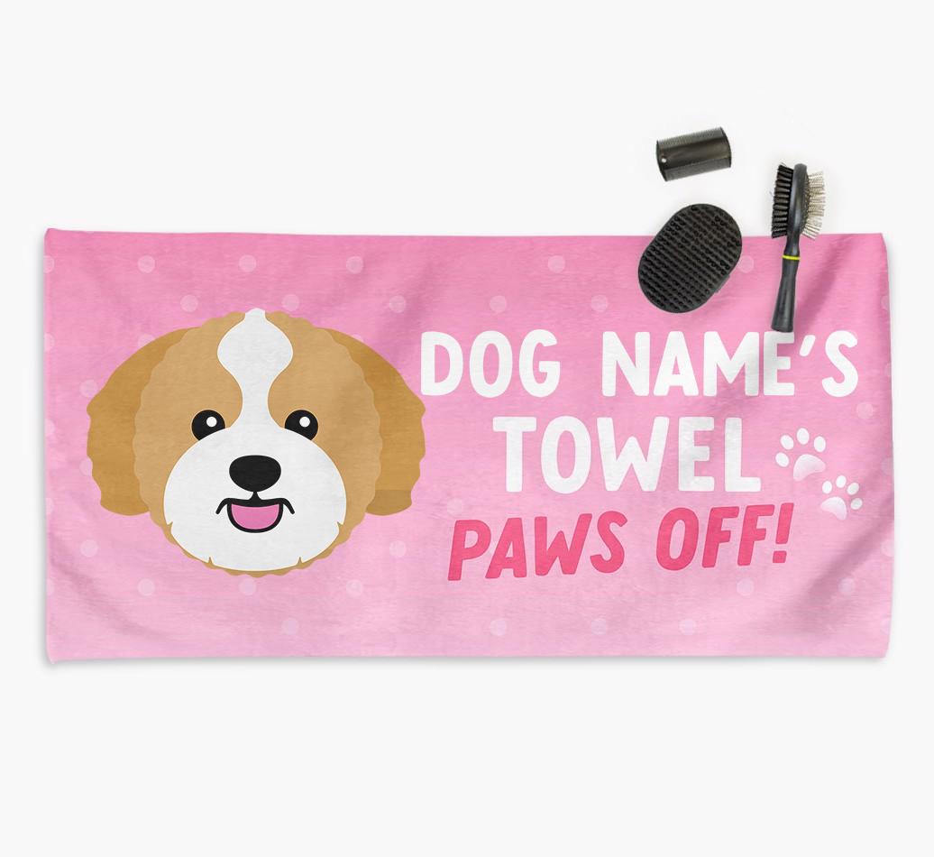 Perfect for messy pups and for pampering your Zuchon at bathtime, this soft and absorbent towel is made for cleaning your mucky pup and drying them off in a flash. It's personalized with Zuchon's name and icon and is printed with a message for everyone else to keep their paws off it!