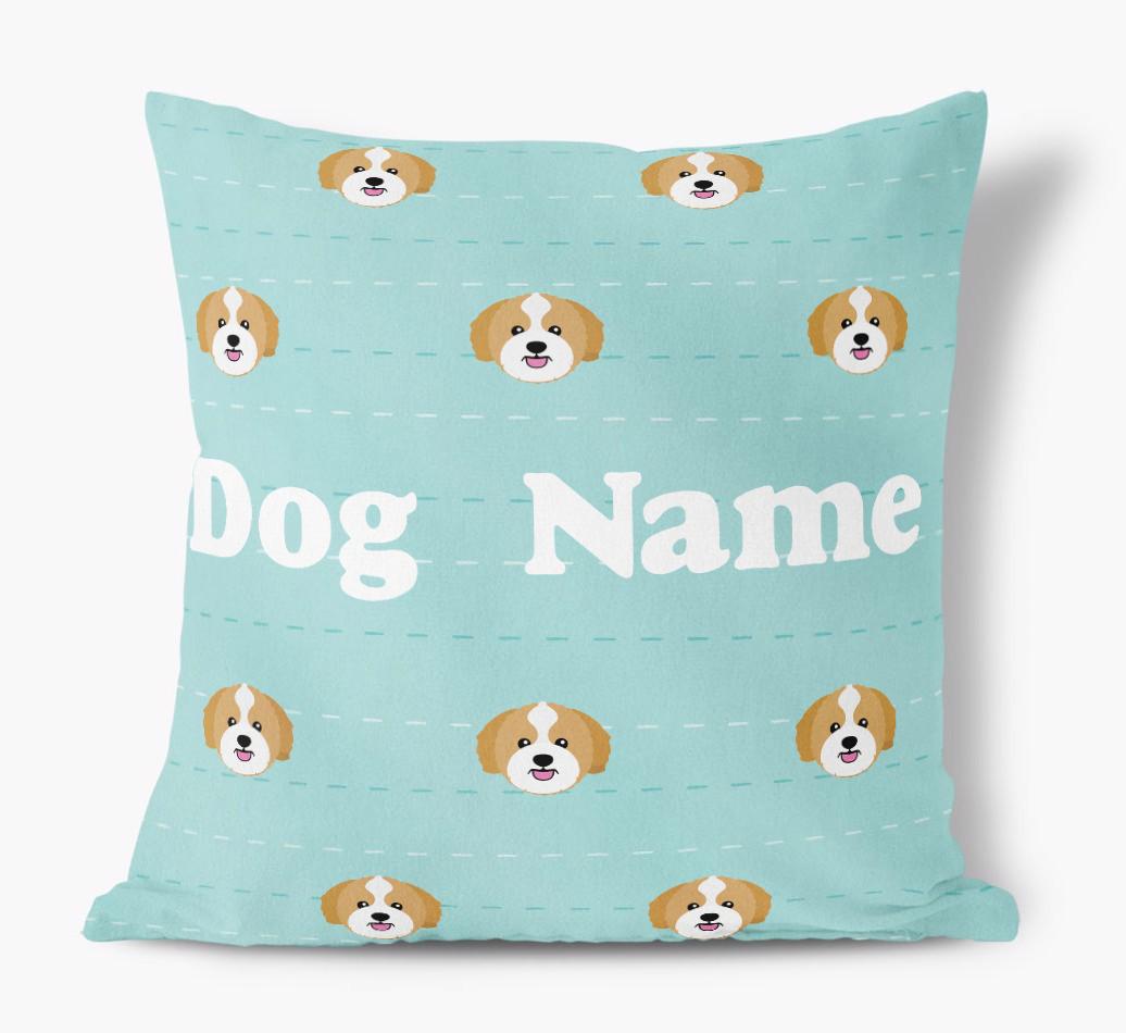 Featuring a furbulous Zuchon icon pattern, this pillow is available in six chic color-ways and is personalized with Your Zuchon's name.